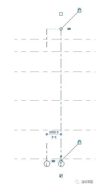 轴线新建楼层平面无轴网:由于新建轴网未影响至标高3楼层平面,故需要切换至相应立面,拉伸轴网至相应标高即可。
