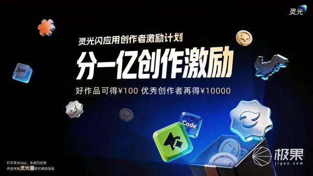 据悉,该计划将于4月20日启动:每天最高100万激励10000个优质闪应用;每周最高100万激励100名优秀创作者。用户在灵光App生成闪应用,并发布到灵光圈即可参加评选。同时,灵光全面升级闪应用功能,强化多智能体协作、全模态生成、手机端原生能力集成,加速打造消费级Coding Agent。希望通过产品迭代和创作激励,持续降低大众用户的创作门槛,加速 “一人应用”生态的涌现。